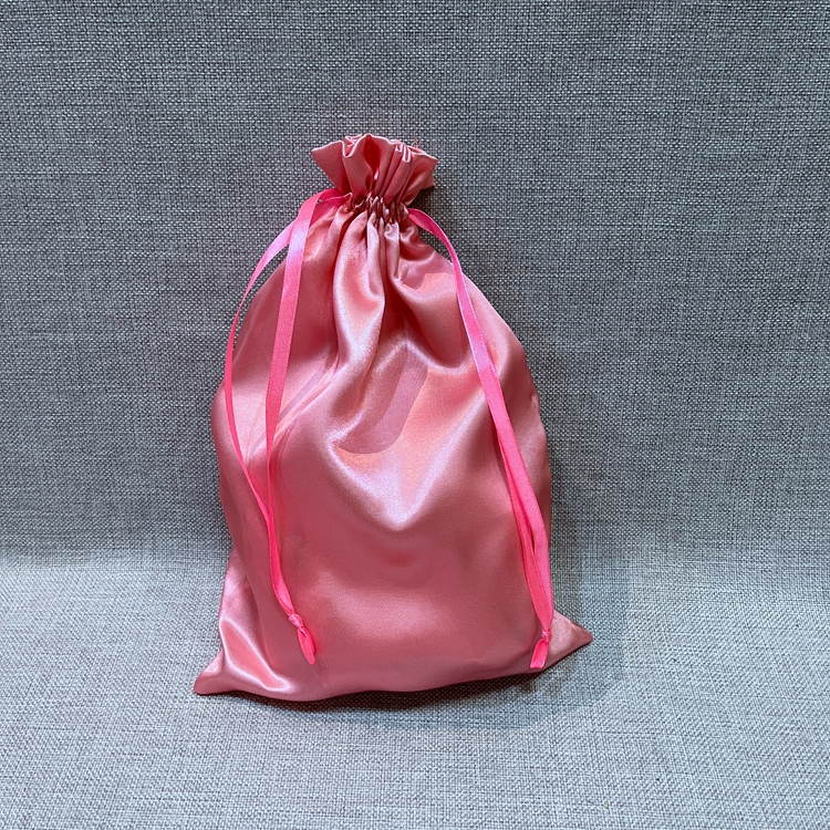 Custom logo pink silk satin bags hair,hair extension bags for bundles